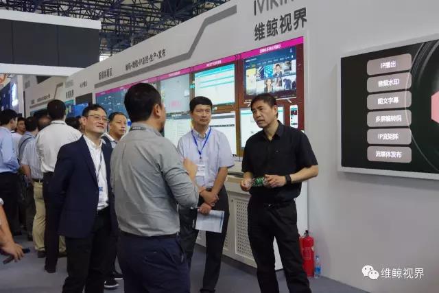 Chinese Academy of engineering, former CCTV chief engineer Ding Wenhua (right) and former CCTV deputy chief engineer Song Yichun (right two) were visiting the visual whale visual field. With the leadership of the IVIKING general manager Teng Zhehuan and vice president Guo Liang, they watched the demonstration of "all media monitoring", "content comparison monitoring", "unified supervision", "new media system solutions" and other exhibition areas.
